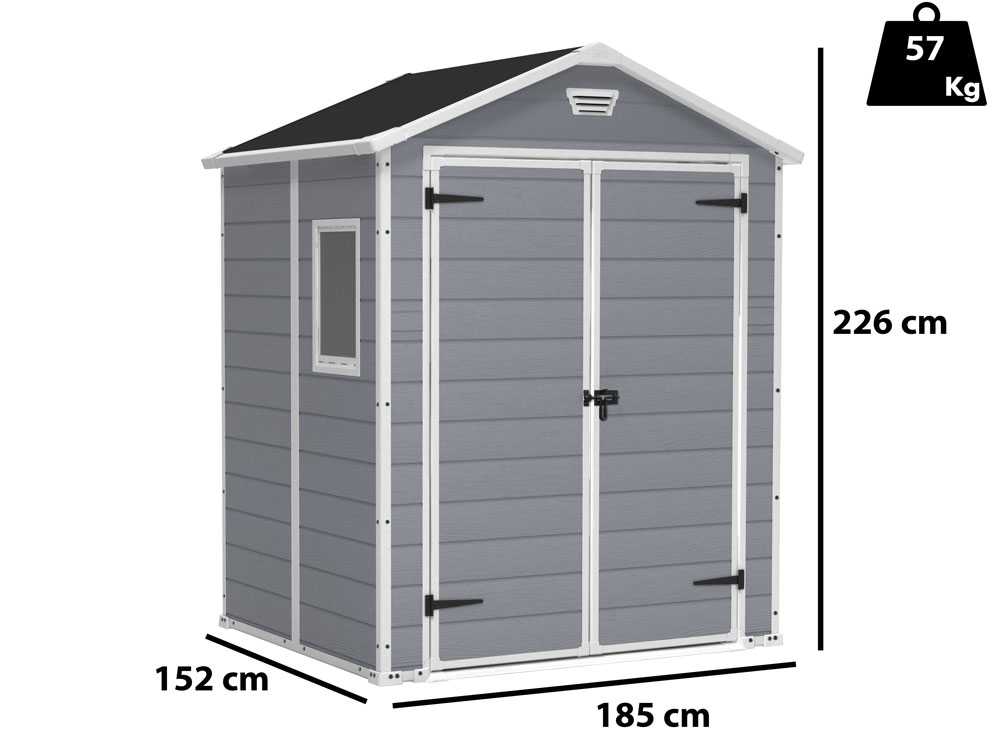Keter Manor grau – Gartenhaus – mit Seitenfenster – 185x152x226 cm