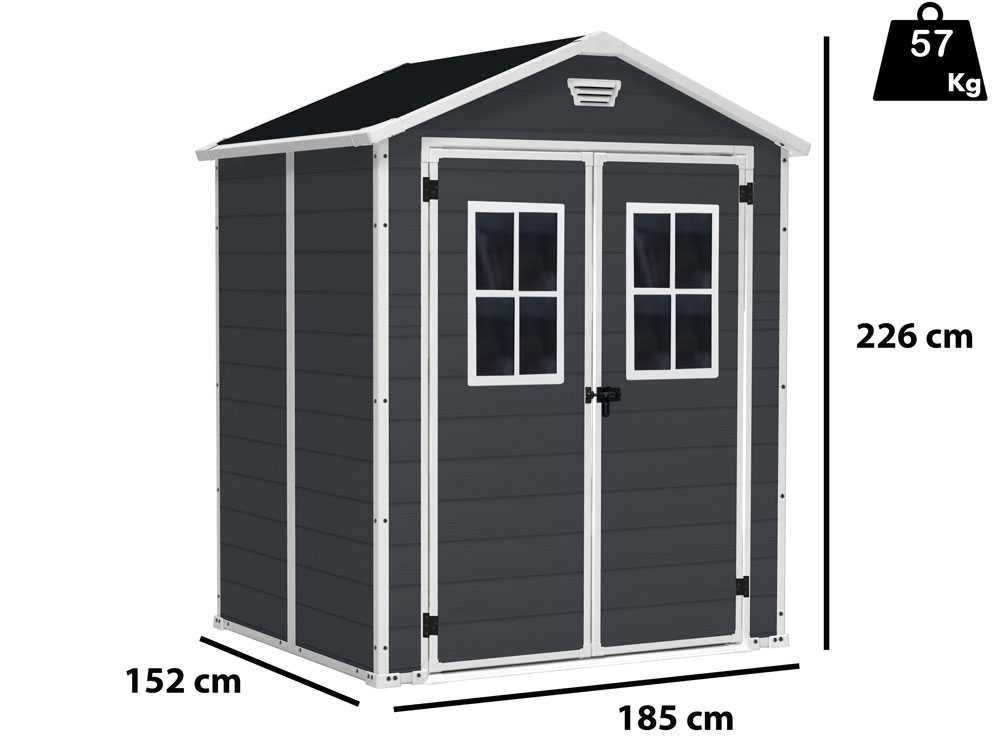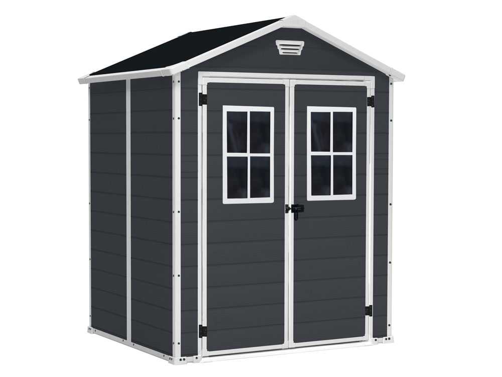 Keter Manor schwarz – Gartenhaus mit Doppelflügeltür – mit Frontfenstern