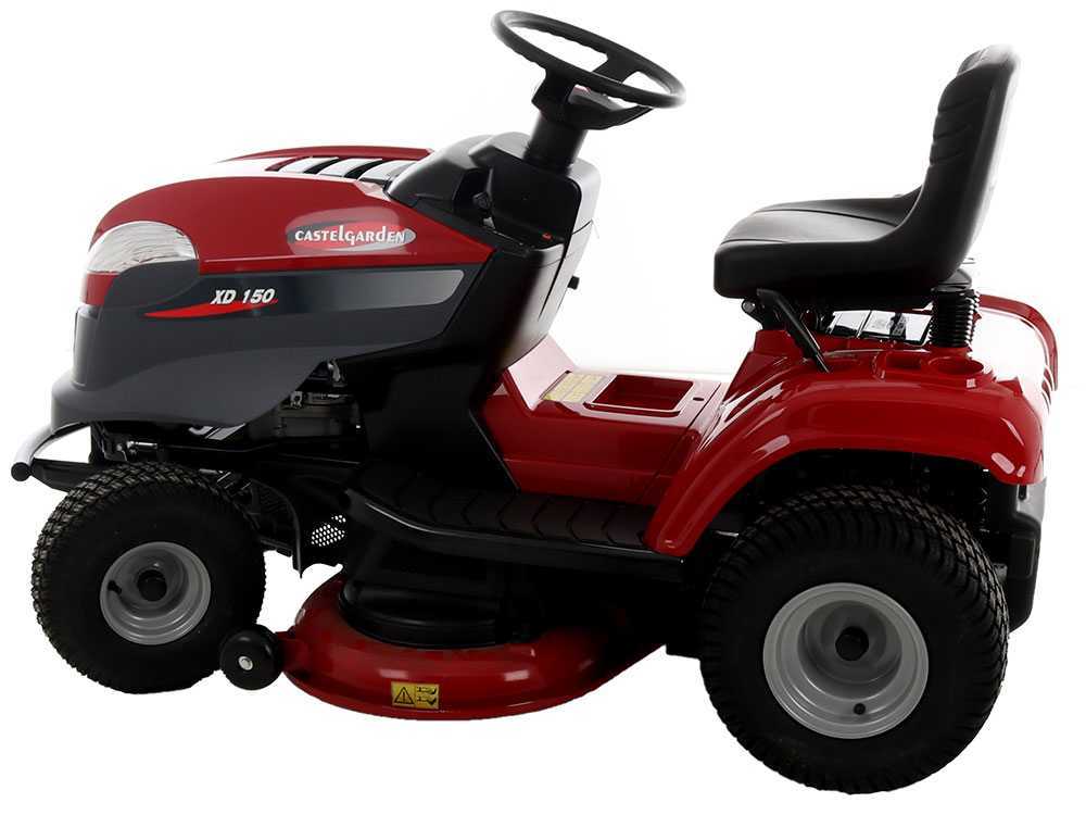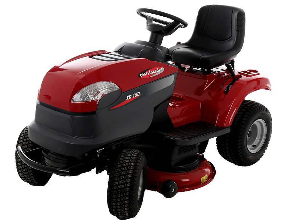 Die wichtigsten Bedienelemente und Einstellungen des Rasentraktors Castelgarden XD 150 sind: